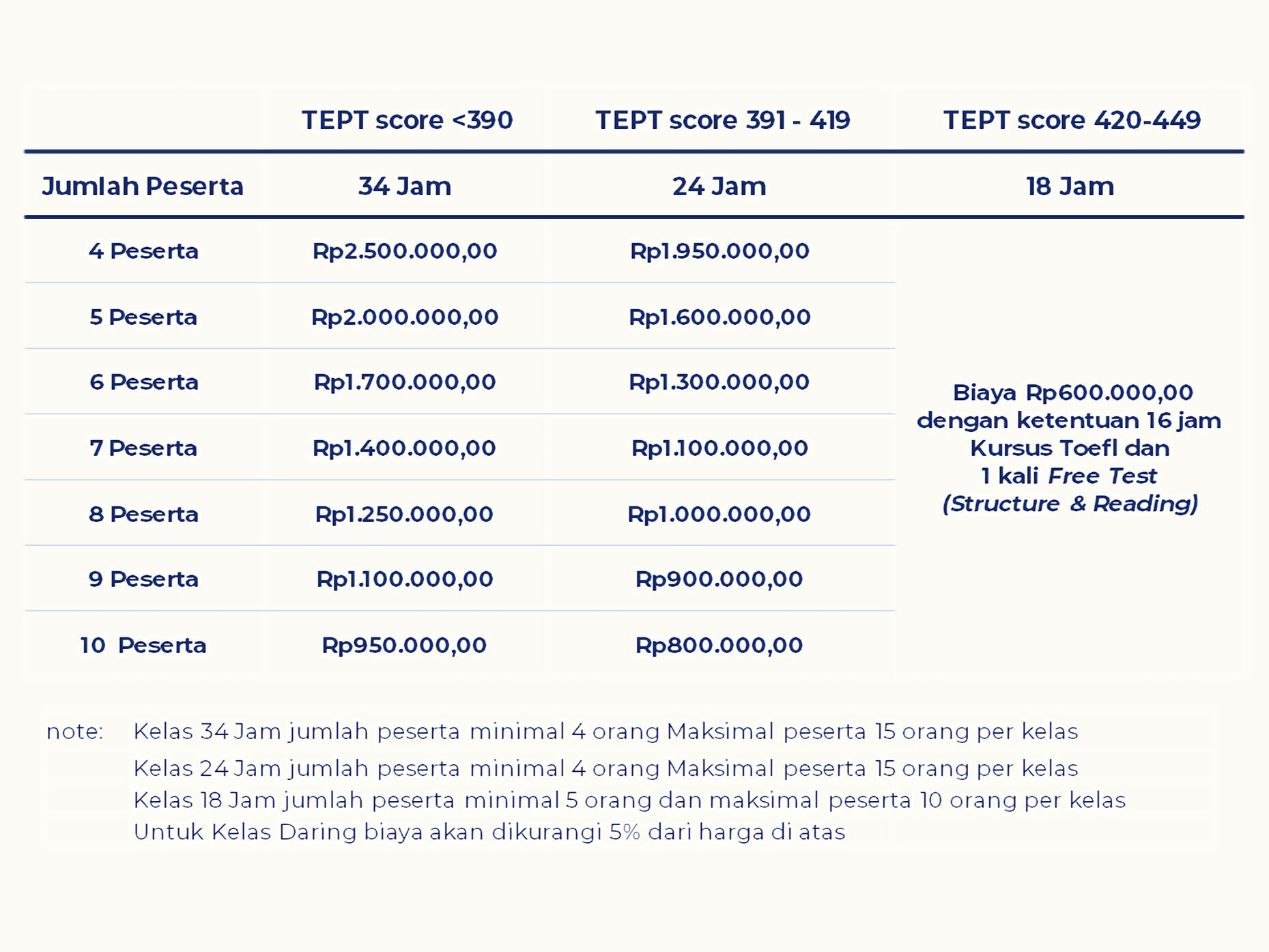 | Intensive* | Rp14.500.000,00 | 120 Jam |